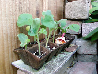 I took these pics the day before they transplanted them into big containers. I will track their progress. We're hoping to harvest the pumpkins for Thanksgiving pie this year!
