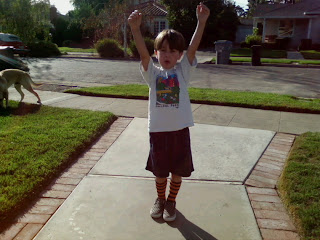 /I found some awesome striped socks on clearance recently and Jaden has been wearing them all week. He pulls his own outfits together for school every morning and he's a whiz with them.